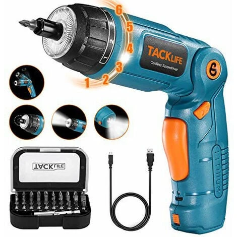 Contenu de l’emballage : le tournevis sans fil rechargeable TACKLIFE SDH13DC est livré avec 1 câble de charge micro USB pour plus de commodité de charge ; 1x manuel d’utilisation ; 1x Carte avec un service amical ; 31 accessoires (dont 5 embouts Phillips, 5 embouts à fente/tête plate, 5 embouts Pozidriv, 10 embouts étoile/Torx, 5 embouts carrés, 1 accessoire d’extension de 60 mm), vous offrent une expérience de vissage pratique et pratique pour divers projets dans toute la maison. .
