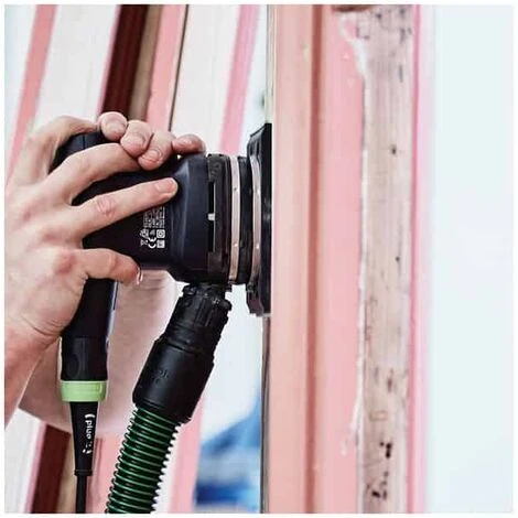 Santé preservée et moins de retouches : travail sans poussière avec un aspirateur ou le sac récupérateur de poussière Longlife et le capot PROTECTOR pour un ponçage en douceur le long des fenêtres, cadres et panneaux