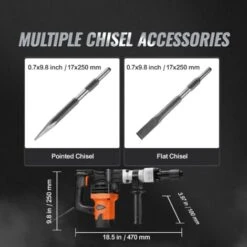 VEVOR Marteau Piqueur Perforateur Burineur Demolition 3500 W 2 Burins 1900 BPM
