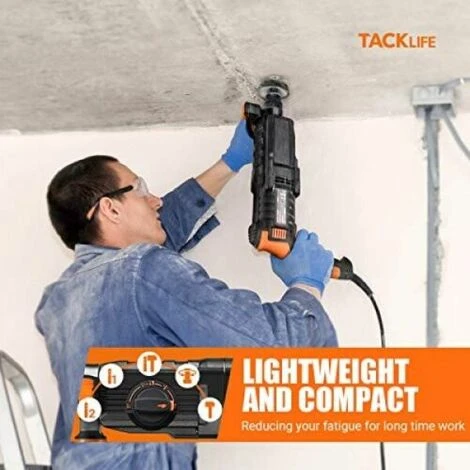 Le Marteau Perforateur TACKLIFE de 800 W est facile à percer dans la pierre, le béton et autres matériaux similaires. Le marteau rotatif est un marteau de démolition pratique qui s’adapte à vos besoins en combinaison avec les burins fournis. La vitesse de l’outil est réglable. De cette manière, il est possible d’adapter l’outil au travail que vous voulez effectuer.