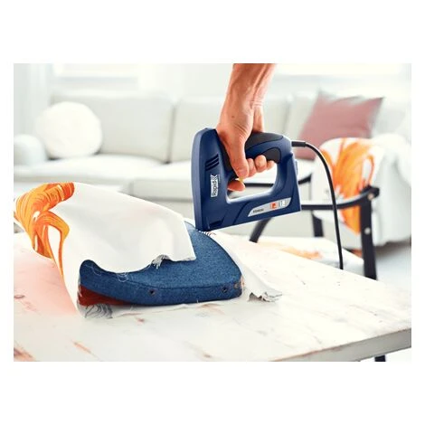 Une agrafeuse électrique puissante et très maniable pour les travaux autour de la maison. La ESN530 est idéale pour la pose de tissus d’ameublement, les travaux de textile, la moquette, le cuir, ou les panneaux de bois fin. Le devant de l’agrafeuse plat permet un accès plus facile dans les coins, ou autres espaces étroits ce qui permet de faciliter son efficacité et le confort de l’utilisateur. Un magasin de chargement tout en acier et une solidité assurée offrent une plus longue durée de vie.