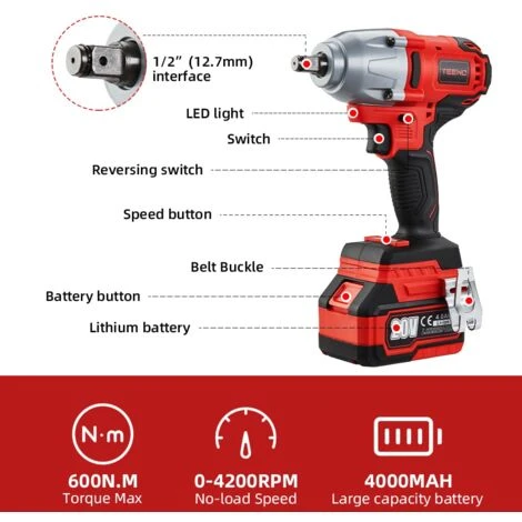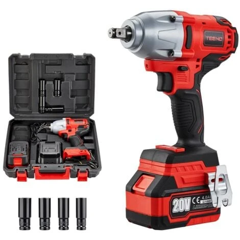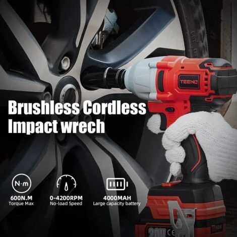 【Cadeau parfait】 1 × clé à chocs sans fil TEENO, 1 × batterie Li-ion 4,0 Ah, 1 × chargeur, 4 × clé à douille, 1 x boîte intérieure, 24 × mois de garantie.