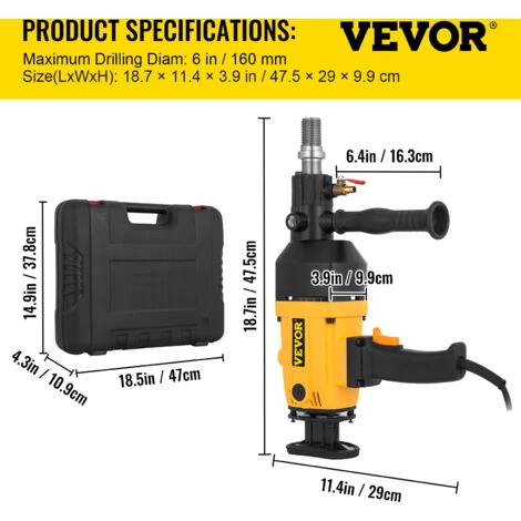 - Diametre de Percage Maximum de 15,2 cm: Le moteur puissant de 2180 W de la foreuse a carotter portable est concu pour le forage humide dans le beton arme, la pierre, lasphalte, le marbre, la ceramique, les murs, les sols, etc. Avec un diametre de percage maximum de 160 mm et une vitesse continue de 1600 tr/min, vous pouvez percer avec moins deeffort.