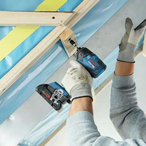 La GDR 18V-200 Professional est conçu pour le serrage et desserrage de vis dans de la tôle, du métal et du bois. De plus, cette visseuse à chocs sans-fil est compatible avec toutes les batteries et tous les chargeurs 18 V de Bosch Professional (Professional 18V System).