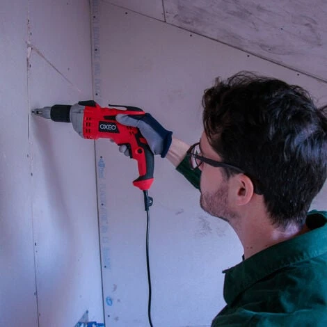 Avec la visseuse plaque de plâtre 710W, vous n’aurez plus de difficultés à visser du placo. Bien plus efficace qu’une visseuse classique, dites adieu aux vis qui partent de travers, qui sont trop ou pas assez enfoncées ! La visseuse est idéale pour poser avec précision les vis placo platre sur les montants métalliques soutenant les plaques de plâtre.